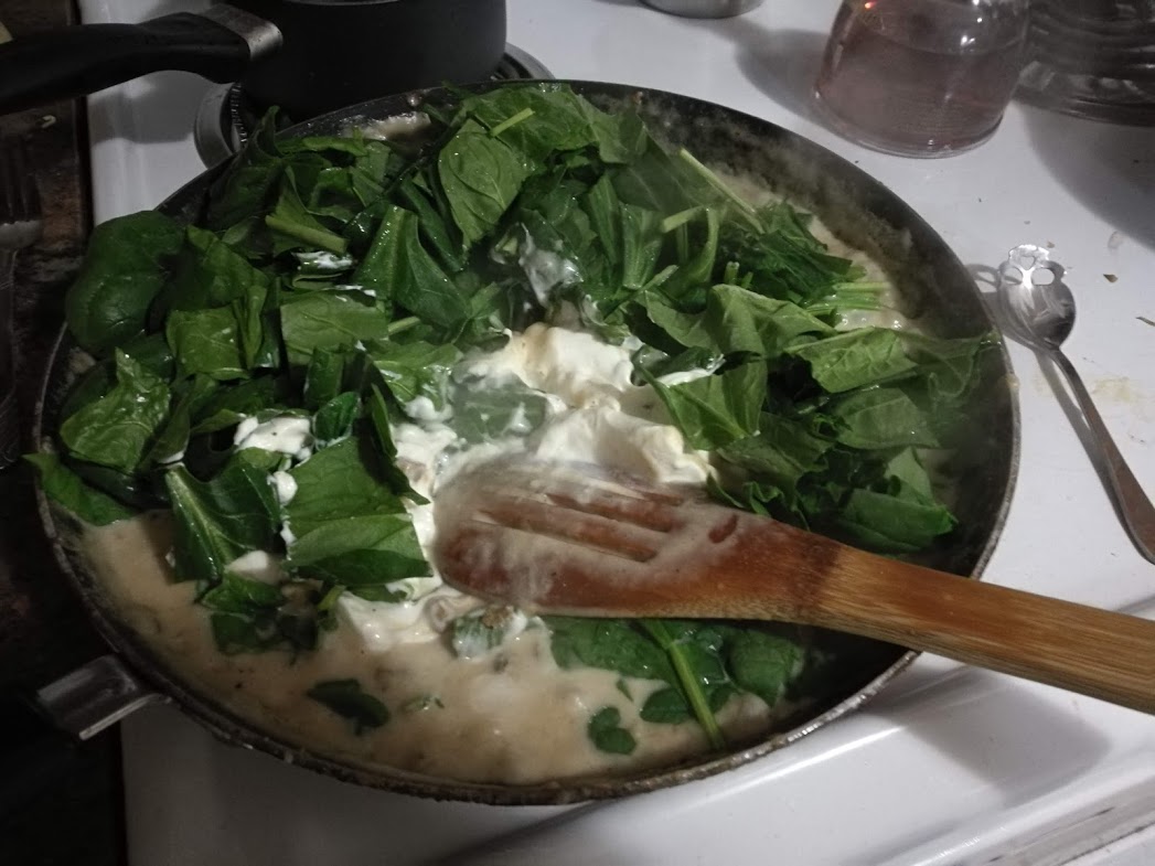 Some background, I guess. Happy Troll is a dish that goes by many names. Farmer’s Delight, Spinach Fandango, a few others. But after Katychla made it once for a group of cranky trolls and their bickering dissolved into the happy grunts of eating, the new name stuck. Happy Troll.