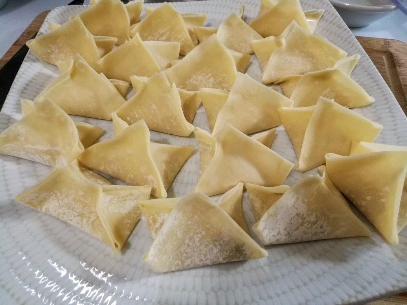 Look at those lovely bitches. I should have pinched the corners a bit tighter. Ah well. Get some oil going.