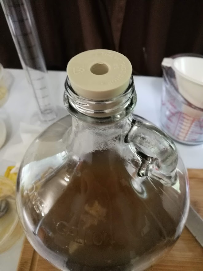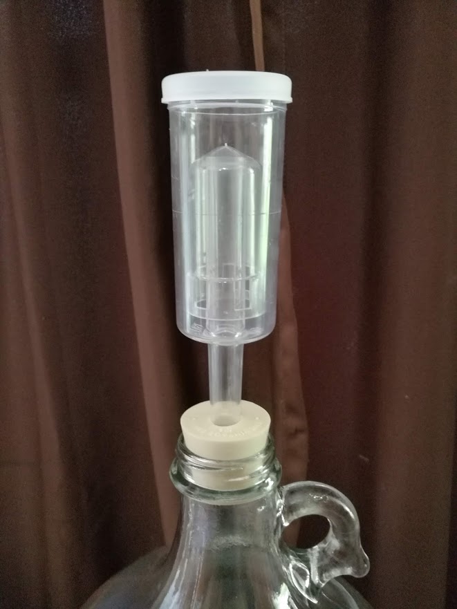 - Cover with a bung and airlock filled with sanitizer to equilibrium.