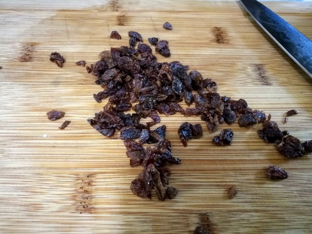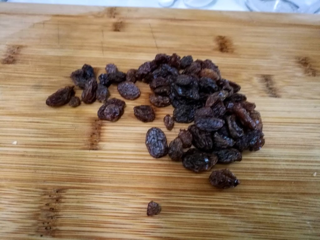 You want about this many raisins. Yeast LOVES raisins, it gives it a little extra sugar and the other foods it needs to really work super hard. Because otherwise, the yeast is going to be living on the equivalent of candy bars until its job is done. Fun, yes, but a recipe for disaster.