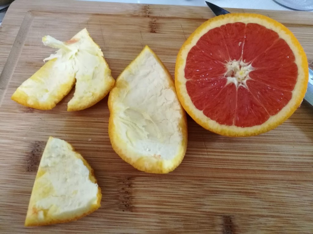 I grabbed a blood orange it seems. This was completely intentional. Yup. It’ll all do the same thing. Eat the yumminess out of it and keep the peels. The peels are the part we want for the mead.