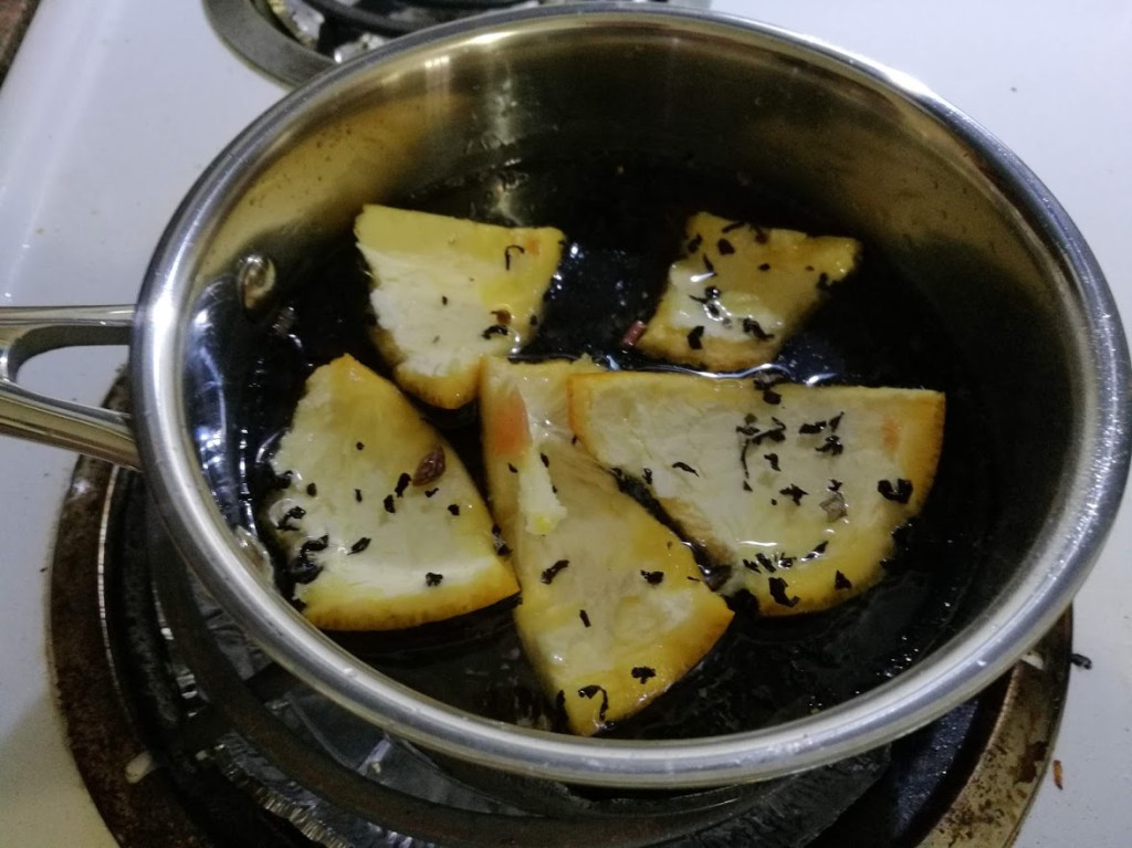 Add about a cup of water and bring it to a boil. Let it simmer for about 15 minutes. We’re trying to get it strong. This will actually make your kitchen smell pretty great.