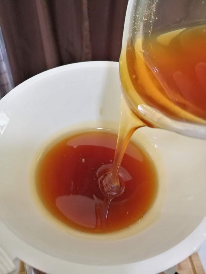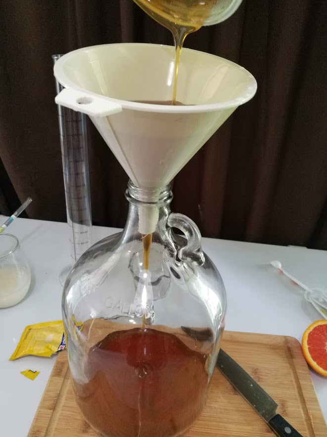 Now using the funnel, pour the honey into the carboy. Oh Light this part is just so weirdly pretty and I love it.
