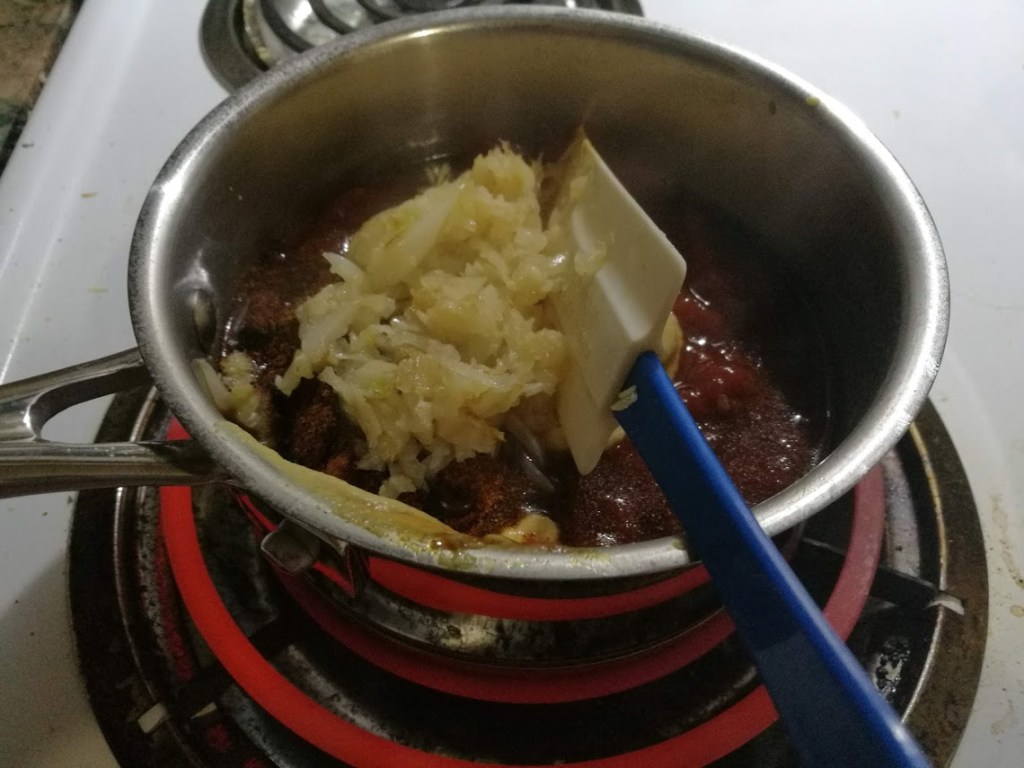 - Near the last half hour, start the sauce. Combine garlic and onion in a small saucepan and saute until fragrant.