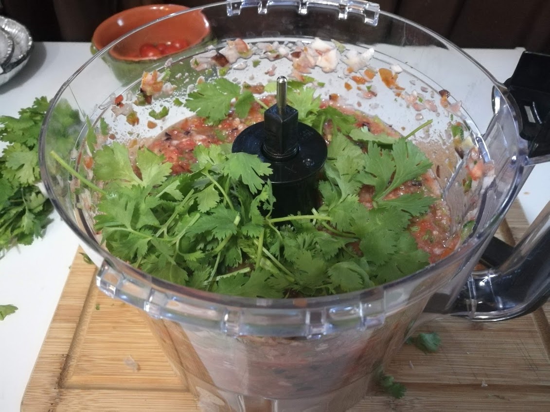 Whirl it up and give it a taste. You might find that you need salt or ‘something’. Usually ‘something’ means either salt or acid. The tomatoes are a lot of acid, so it’s likely not that. If it still doesn’t taste quite right after that, I recommend some cumin. Try a little bit of salsa on a spoon, sprinkle it on and see if that tastes good. If so, start adding it to the blender until it tastes the same as it did on the spoon.